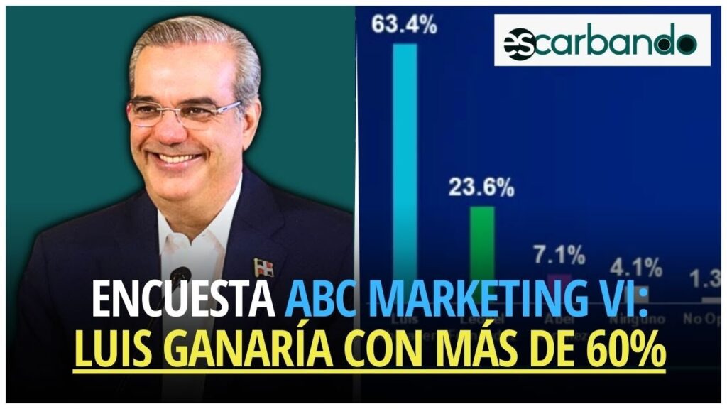De celebrarse hoy las elecciones, el presidente Luis Abinader ganaría en primera vuelta con un 63.4%, Leonel Fernández obtendría 23.6% y Abel Martínez 7.1%, de acuerdo con la sexta encuesta nacional de percepción social y política presentada este lunes por la firma peruana ABC Marketing. Considerando solamente los votos válidos, sin incluir no sabe y el ninguno, Abinader sumaría un 67.0%, Leonel 24.9% y Abel 7.5%.
